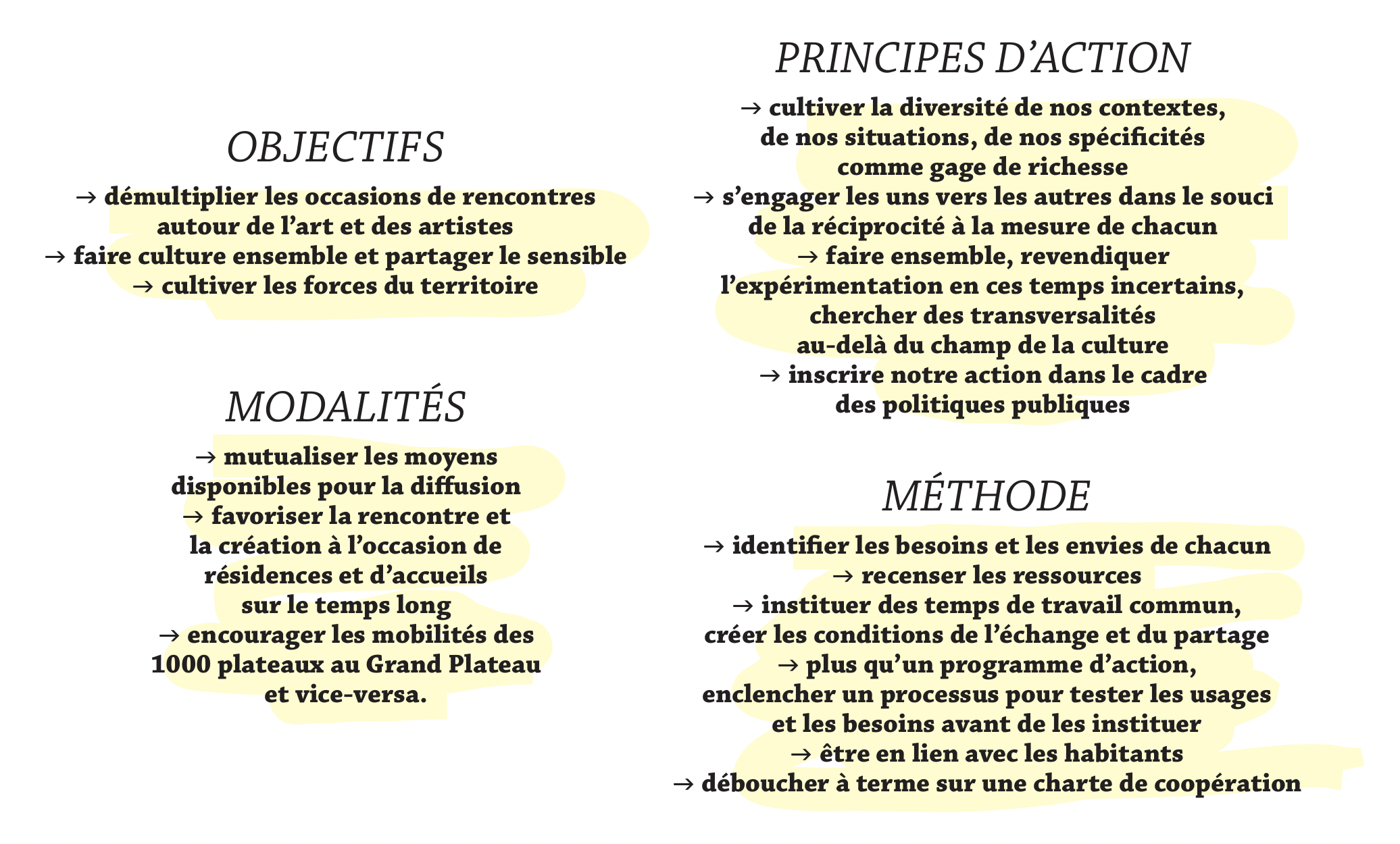 C’est porté par une volonté et une nécessité de placer la coopération au centre de nos pratiques professionnelles qu’avec plusieurs acteurs culturels du territoire nous avons créé le Réseau des 1000 plateaux, en octobre 2021.